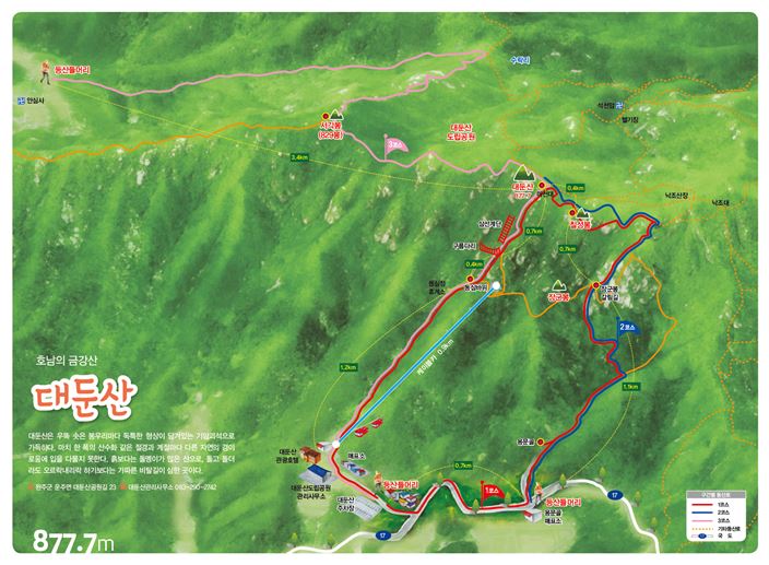 6월은 자연을 느끼고 그 생명력과 활기를 담뿍 느끼수 있는 달이 아닌가 합니다. 그 생명력이 가득한 산으로의 등산은 그 생동력과 활기를 나도 느끼고 그 속에서 움직이고 있는 나란 인간의 존재의 하찮음과 자연과 하나가 된 나를 느끼는 순간이기도 할 것입니다. 또는 오르는 즐거움과 완등의 기쁨등이 더해지고 함께 하는 이들과의 즐거움도 빼놓을 수 없습니다. 시간이 되신다면 빼어난 산수로 호남의 금강산이라 불리는 대둔산 꼭 한번 가 보시길 강력 추천드립니다. 꼭 안전 등반하시고 아름다운 대둔산의 풍경과 바람도 즐겨보시고 또 완주대둔산축제도 즐겨보시고 체험프로그램도 참여하셔서 상품도 얻는 행운도 함께 누리시길 바라겠습니다.