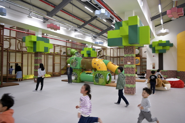 지상 1층 995㎡ 규모에 붕붕뜀틀, 볼플장 등을 갖춘 실내놀이터(사전예약)와 무인체험시설(보드놀이와 레고 만들기), 커뮤니티룸, 열린 도서관, 휴게공간, 대관실 등이 조성돼 있어 실내에서 아이들이 즐겁게 놀수 있습니다. 식당과 카페등 편의시설도 저렴한 가격에 이용할수 있습니다.